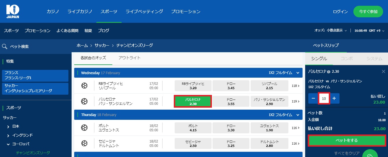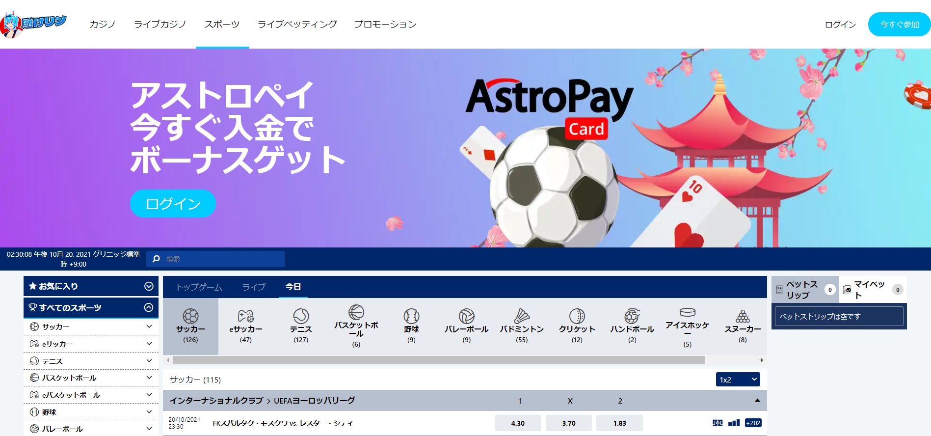 ※ 以下、画像はクリックすると拡大します。/ほぼ同じなので、10BetJapan時代のものを掲載しています。