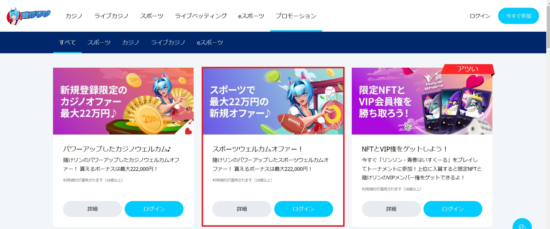 ここでは、賭けっ子リンリンの、「ウェルカムボーナス」 について!