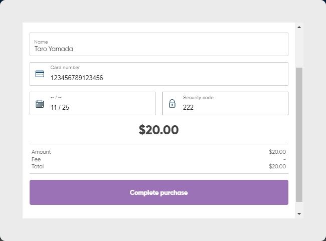 あとは、クレカ情報を入力して、『Complete Purchase』 ボタンを押せば、入金完了♪