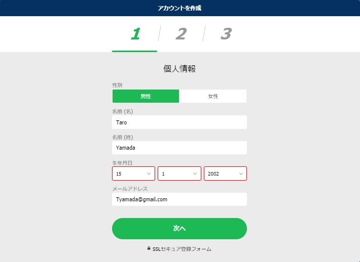 ここページを参考に入力していけば、2〜3分で、登録完了です!!