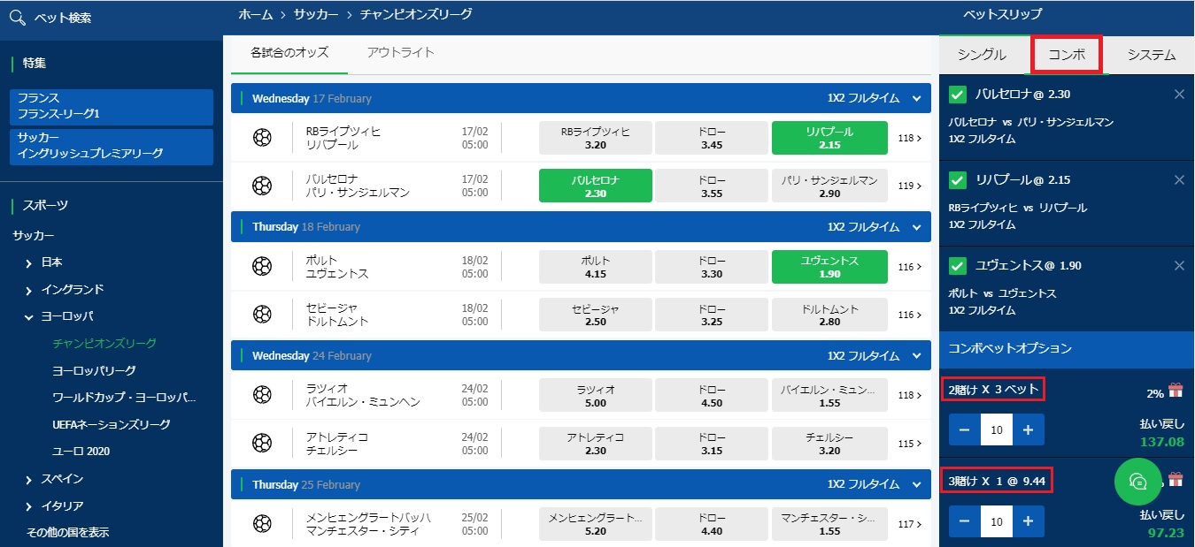上の画像は、チャンピオンズリーグのオッズなんですが、